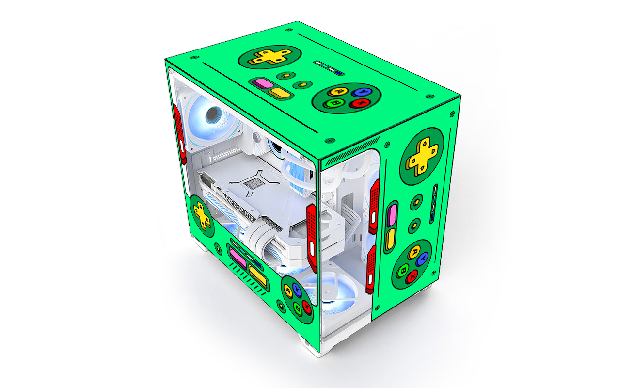 - **视觉基调**:以深色(黑/暗灰)为底,搭配硬件 RGB 灯效色彩(如显卡、风扇的炫彩灯),营造赛博朋克氛围,契合游戏主机定位;