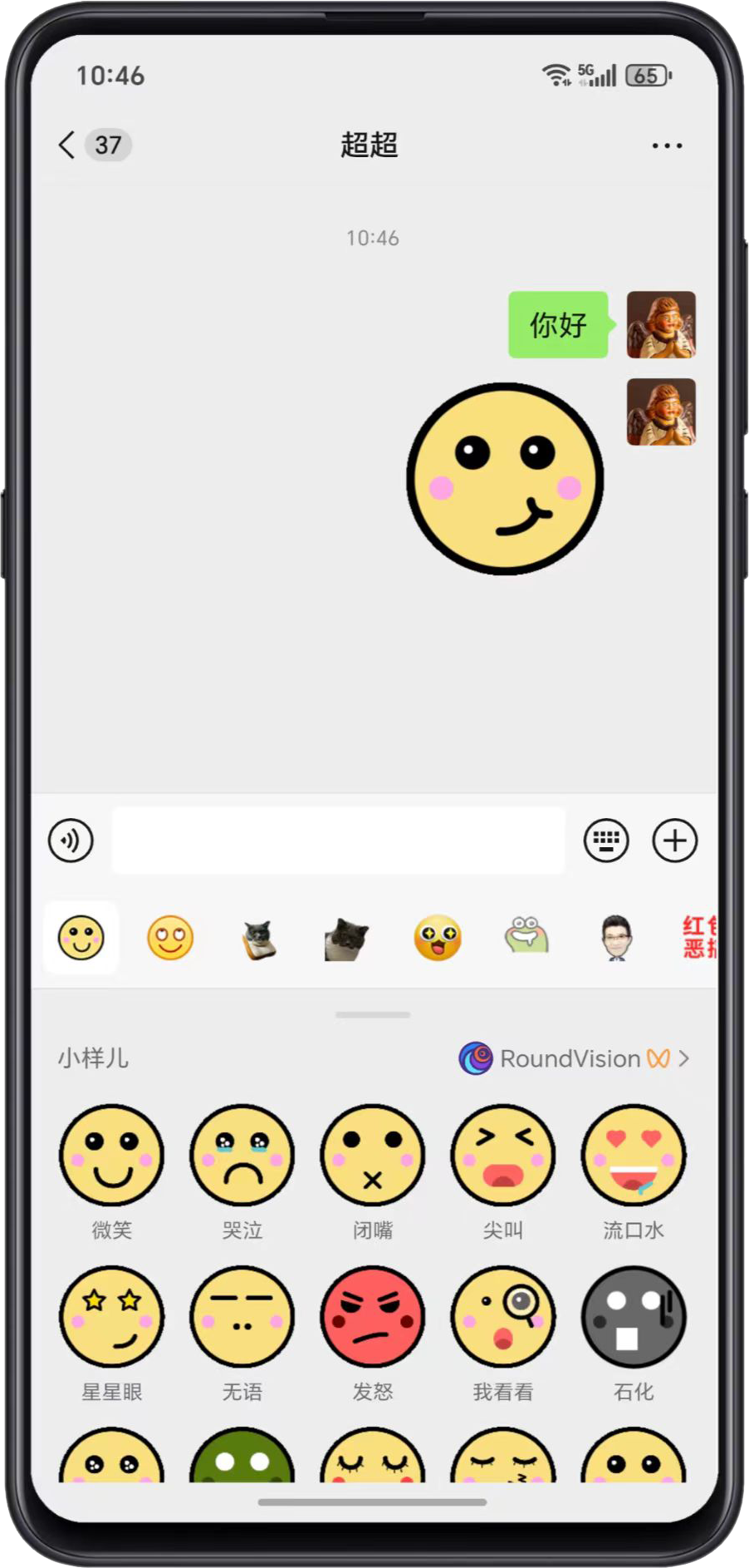 除了有传统的QQ时期使用的“流口水”“微笑”“害羞”等经典表情,还加入了符合当下年轻人的“石化”“无语”“恶心人”等16枚精致大黄脸新生代表情包,更符合你的口味!