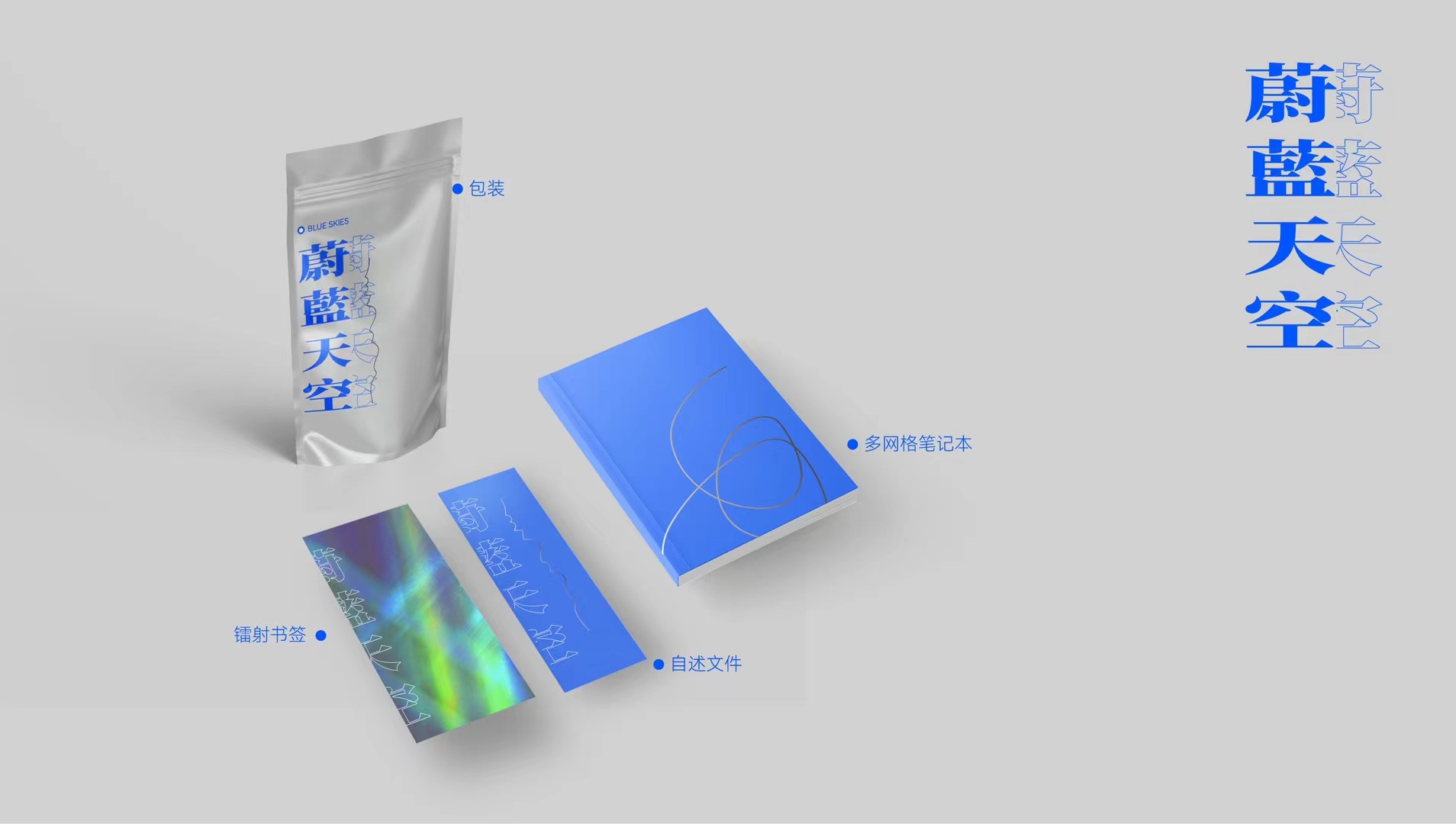 对于这个作品的灵感是来自于夏天的天空,包括这个设计也是在夏天做的,我住在农村,老家的天很蓝。
