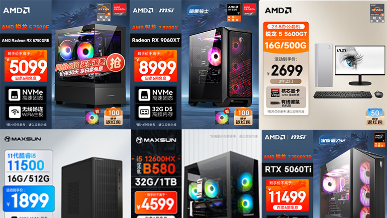 - **品牌与标签强化**:AMD、微星、铭瑄 等 logo 醒目,配合“锐龙处理器”“暗黑骑士”系列名,加深品牌记忆,抢占用户心智。